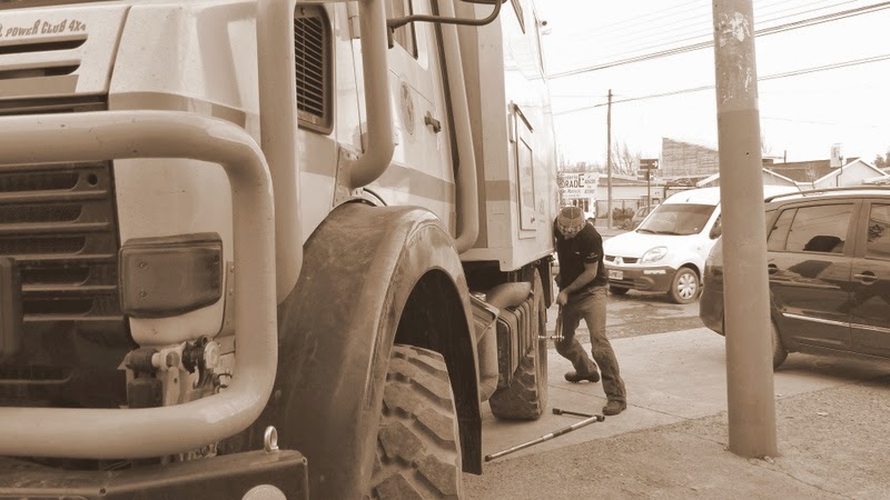 La giornata di oggi e’ dedicata alla rotazione dei pneumatici alla Gomeria Ramos di Rio Gallegos.