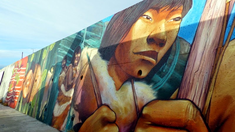 La Tierra del Fuego ci accoglie con i colori dell’opera di Alapinta , un murales che racconta la vita difficile dei nativi in questa terra selvaggia e cruda.