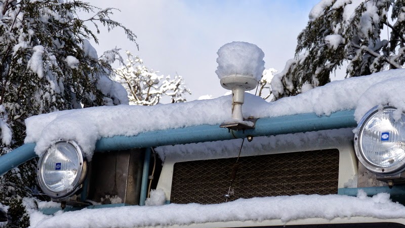 Entriamo nel Parque Nacional Lanin, completamente innevato, addentrandoci in un meraviglioso bosco di maestose araucarie. Salutiamo l’Argentina e rientriamo in Cile. Ormai siamo abituati al cambiamento repentino del clima: dalla pioggia del mattino, passiamo al tiepido sole, alla neve e poi ancora pioggia, sino a Pucon, le nuvole basse ci oscurano la vista del vulcano. Proseguiamo finche’ c’e’ luce, sino a Villarrica, una bella cittadina sul Lago Mallolafquen. Gli ultimi spiragli di sole al tramonto ci accompagnano sul lungolago ricco di vegetazione , con alberi di mimose incredibilmente fioriti e, alla base, cespugli dai minuscoli fiori gialli. Proseguiamo, instancabili, per raggiungere entro sera, le Termas Geometricas, favolose piscine dalle acque termali del vulcano Pucon. Il sentiero che ci attende e’ stretto e fangoso e man mano che saliamo, incontriamo anche la neve che appesantisce i rami degli alberi e ricopre il sottobosco. Cala la luce e i boschi tutto intorno si infittiscono. Proseguiamo e il sentiero sembra non finire mai. Incontriamo diverse salite impegnative con ghiaccio e neve ed altrettante discese e curve, ma Narciso non cenna a fermarsi ed arranca con disinvoltura! L’atmosfera e’ magica, ma al tempo stesso inquietante: siamo soli, fagocitati dal bosco ricolmo di neve e avvolti nel buio piu’ totale. Confidando nei cavalli del Narci, avanziamo senza altra alternativa, sino a scorgere un cartello in legno che, finalmente, indica che siamo arrivati ! Ma questa odissea sembra non finire mai: nel parcheggio interno non si puo’ sostare per la notte, quindi, dobbiamo girare il camion e ridiscendere la pista per alcuni chilometri ancora, in mezzo ad una bufera di neve. Ci accampiamo alla meno peggio su l’unico spazio idoneo per non intralciare il sentiero e , dopo una calda cenetta, ci abbandoniamo nelle braccia di Morfeo.