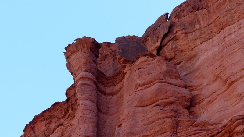 Si “cammina” sul letto asciutto del Rio Talampaya per piu’di 10 km prima di confrontarsi con un’imponente parete verticale di roccia sedimentaria rossa, ai cui piedi si possono decifrare incisioni rupestri di antichi abitanti del luogo. Continuiamo il percorso e siamo circondati da maestose facciate di oltre 150 metri che, plasmate dall’erosione dell’acqua e del vento, assumono le piu’ svariate forme, da cui i nomi di cattedrale, canne d’organo, torre, totem, tartaruga, solo per citarne alcune.