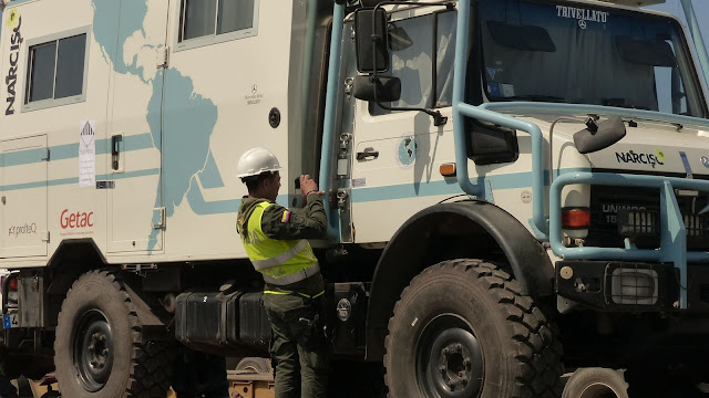 Finalmente la notizia tanto attesa: Manfred, l’agente a cui abbiamo affidato il mandato, ci comunica che lunedì 4 gennaio la compagnia navale Seaboard ha in partenza una nave cargo su cui possiamo caricare il Narci su flatrack assieme alla Bougeotte. Espletiamo tutte le pratiche doganali, controllo antinarcotico , ultimo saluto al Narci e via per una nuova destinazione: Panama’.