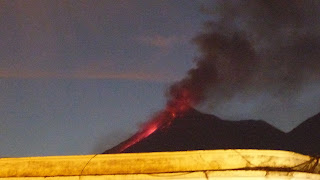 Non molto lontano, le sagome dell’ Acatenango e del Volcan de Agua. Di fronte a noi, la suggestiva presenza del Volcan de Fuego che proprio all’imbrunire decide di sputare nubi di fumo grigio e rossa lava incandescente che lenta scende sui suoi fianchi, regalandoci uno spettacolo unico ed inaspettato.