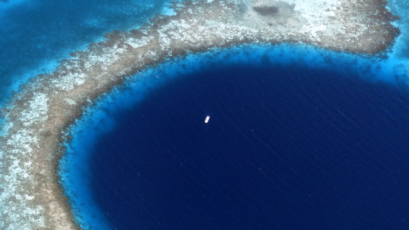 Sino a sorvolare il magnifico Great Blue Hole, una dolina carsica perfettamente circolare, dal diametro di oltre 300 metri. Un gigantesco occhio blue in mezzo all’atollo di Lighthouse Reef, le cui pareti verticali si inabissano per più di 100 metri, tra stalattiti lunghissime e passaggi angusti.