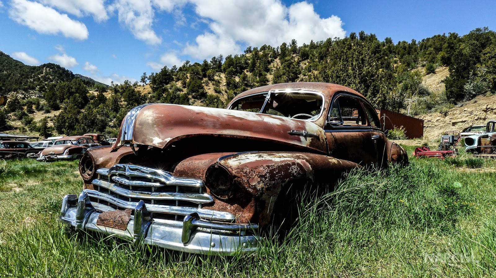 Il giorno successivo scendiamo a valle, lasciandoci alle spalle le nuvole grigie messaggere di neve. Lungo la strada, rottami d’auto americane attirano la nostra attenzione.