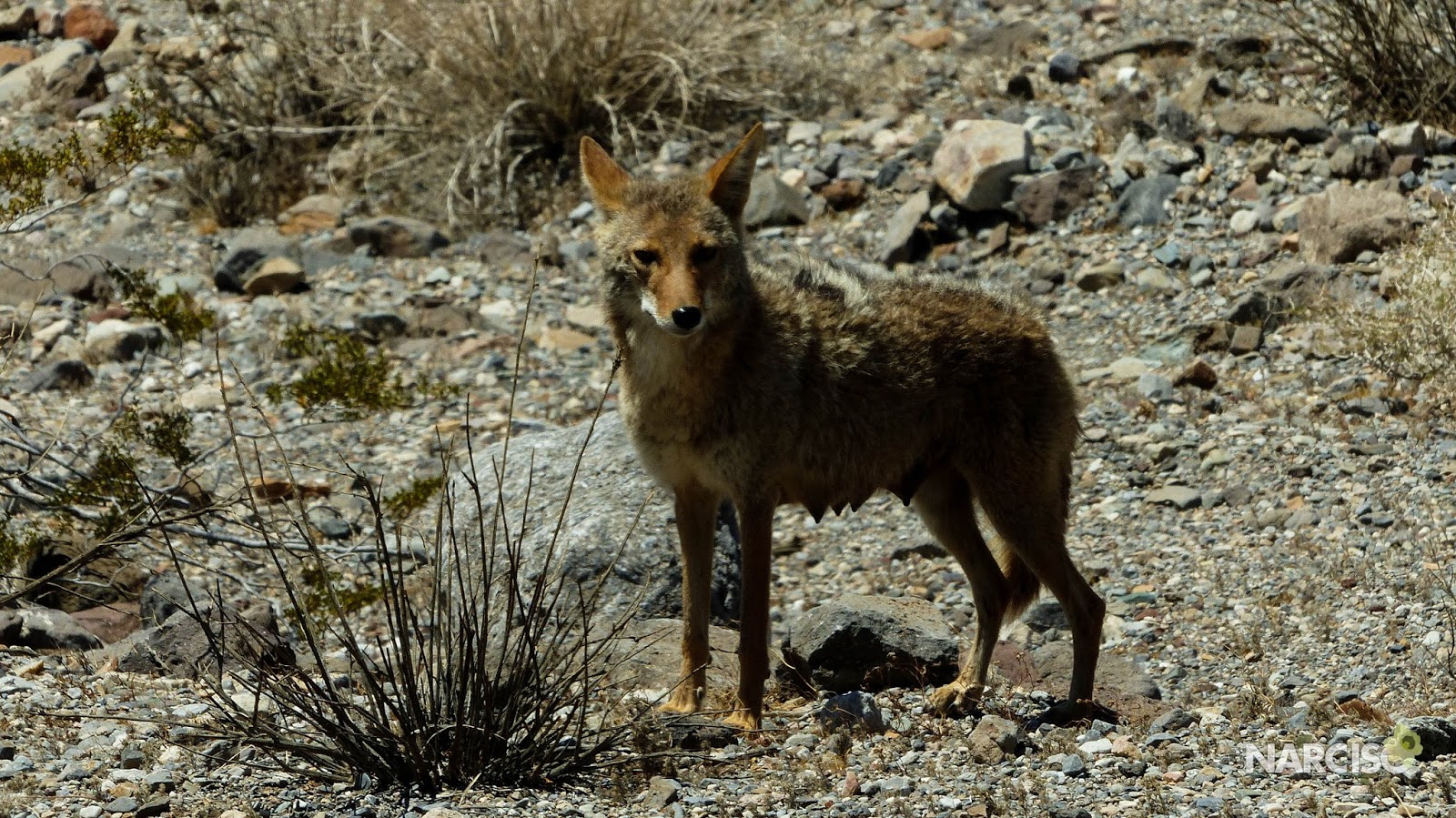 nonostante siamo solo in primavera, la stagione dell’anno che ci permette, comunque, di ammirare la valle nel periodo migliore che smentisce la sua fama di morte e desolazione: qualche fiore colorato spunta tra le basse piante aggrappate al suolo secco e arido ed un coyote solitario cammina su terre arse in cerca di cibo.