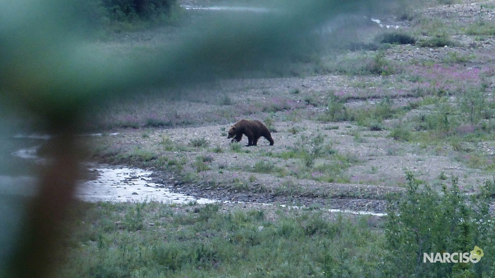 Gli orsi grizzly camminano indisturbati sulle sponde dei fiumi e catturano le loro prede stanandole dal groviglio di arbusti nani che rivestono i monti. In lontananza, si scorge la sagoma candida del maestoso monte Denali la cui cima, a più di 6000 metri d’altezza, è avvolta da bianche nuvole che non intendono dissiparsi